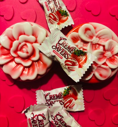In appreciation of my favorite childhood candy, we have made the Her Vengeance Creme Saver Edition Hand bar. This bar is infused with Oarmeal, coconut oil, Castro oil, hints of strawberry and just a little bit of Her Vengeance.