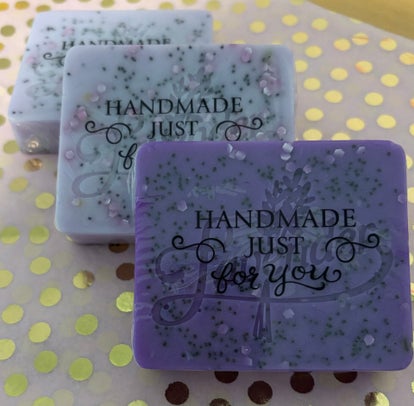 This bar is made with an oatmeal soap base, Aloe Vera, Coconut oil, Jojoba oil, purple soap dye, biodegradable glitter, and just a little bit of her Vengeance.