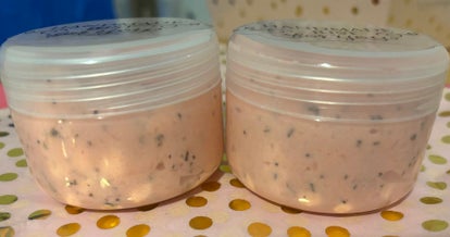 This facial cream is a very light weight face rinse that is sure to bring moisture and smoothness to your skin. This Facial Rinse was made using baking soda, aloe vera, castro oil, coconut oil, honey, mint, poppy seeds, a pinch of watermelon scent, and just a little bit of Her Vengeance.