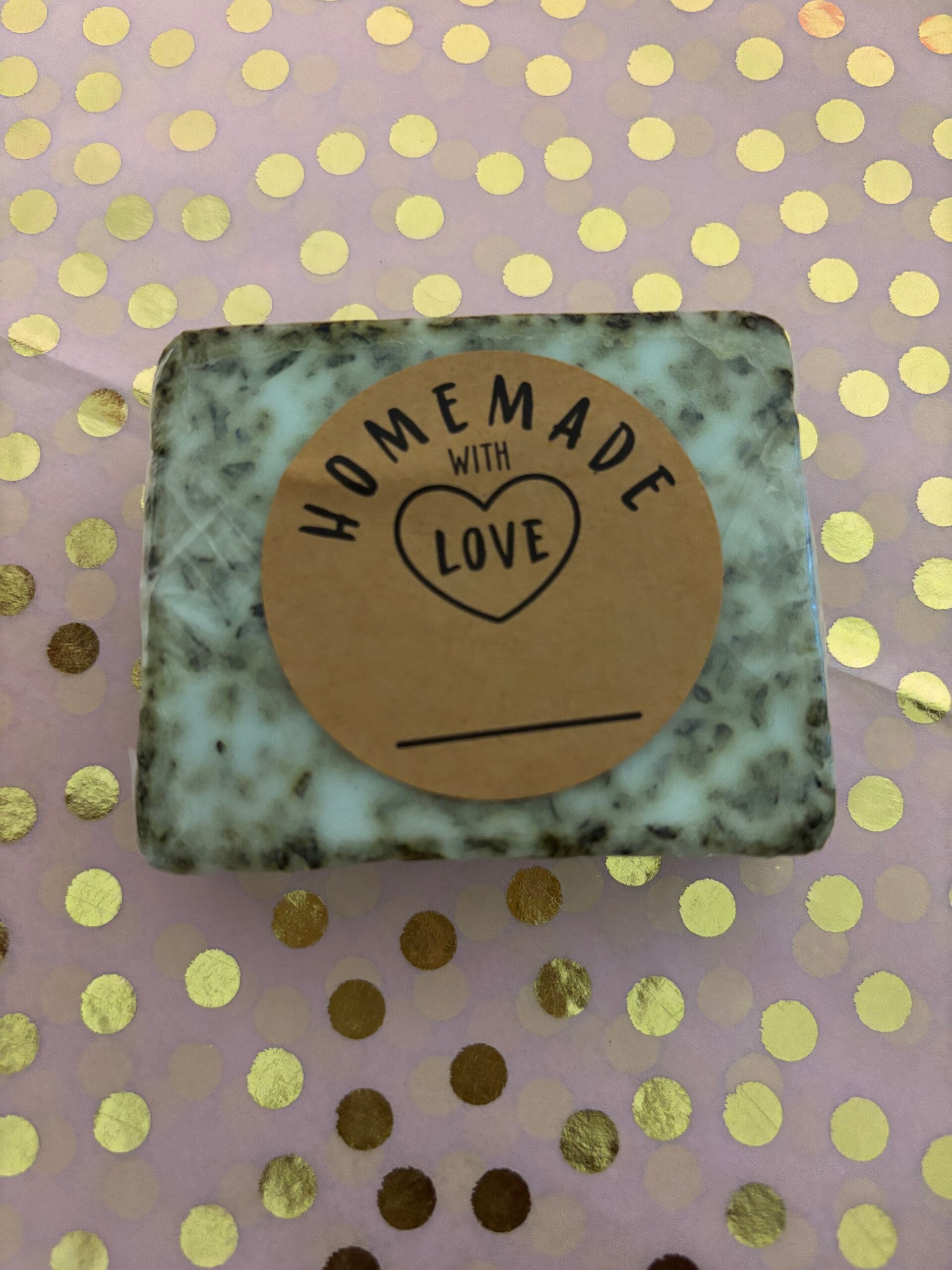 This soap is made with the men in mind. This Fresh Spicy mint Bar was infused with Vitiman E oil, Aloe Vera, Castro oil, sunflower oil, Spice bomb night vision oil, mint leaves, Eucalyptus Leaves, green dye, a squeeze of lemon juice and just a touch of His Vengeance.