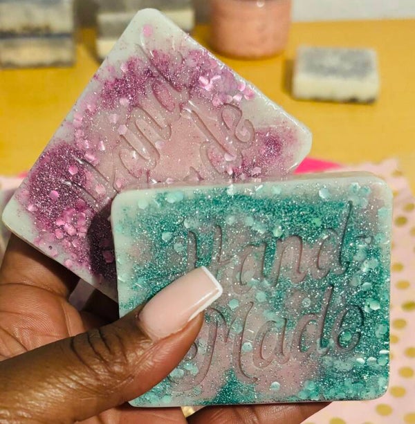 This Mermaid themed Body Bar is super sparkly and fun. This bar was made using goats milk, coconut oil, castro oil, biodegradable glitter, and just a little bit of Her Vengeance.